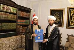 الشيخ قاسم الهاشمي من جانبه اعرب عن سعادته بهذا اللقاء واشاد بالافكار الايجابية التي يحملها مفتي الديار السورية واصفاً اياه بالشخصية المتزنة والمؤثرة وصاحبة الخطاب المنطقي داعياً فضيلته لزيارة النجف الاشرف.
