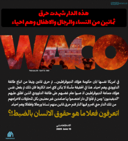 في امريكا نفسها ابان حكومة هؤلاء الديموقراطيين... تم حرق ثمانين ونيفا من اتباع طائفة الداوودي وهم احياء. هذا في الحقيقة مأساة لا يمكن لاي احد انكارها فان ذلك تم بفعل نفس هؤلاء جماعة الديموقراطيين اذ صبوا جام غضبهم على طائفة الداوودي الذين اطلق عليهم "الديفيديون" ومن ثم لجأوا الى دار اعتصموا بها صامدين غير معنيين بكل المحاولات لاخراجهم من تلك الدار حتي اضرم فيها النار فتم حرق ثمانین منهم نساءا ورجالا واطفالا وهم احياء.