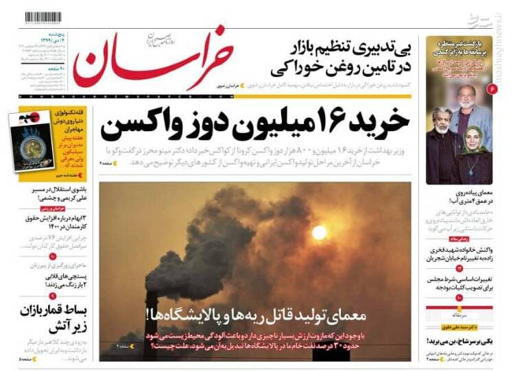 دوراهی ائتلاف - اصلاحات، تصور عجیب دولت از جیب مردم، اصلاحات سوال برانگیز مجلس به قانون انتخابات، قیمتگذاری مصنوعی در بازار مسکن از جمله تیترهای روزنامههای صبح امروز است.