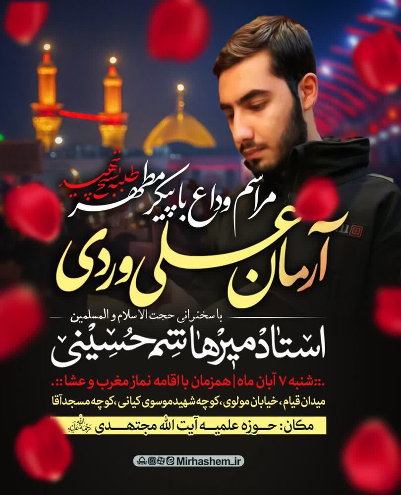 به گزارش خبرنگار سرویس حوزه و روحانیت خبرگزاری رسا، مدرسه علمیه آیت الله مجتهدی(ره) تهران در اطلاعیه ای اعلام کرد که براساس نظر و درخواست خانواده طلبه بسیجی شهید مدافع امنیت آرمان علیوردی مراسم وداع و تشییع پیکر مطهر شهید به شرح ذیل انجام می شود: