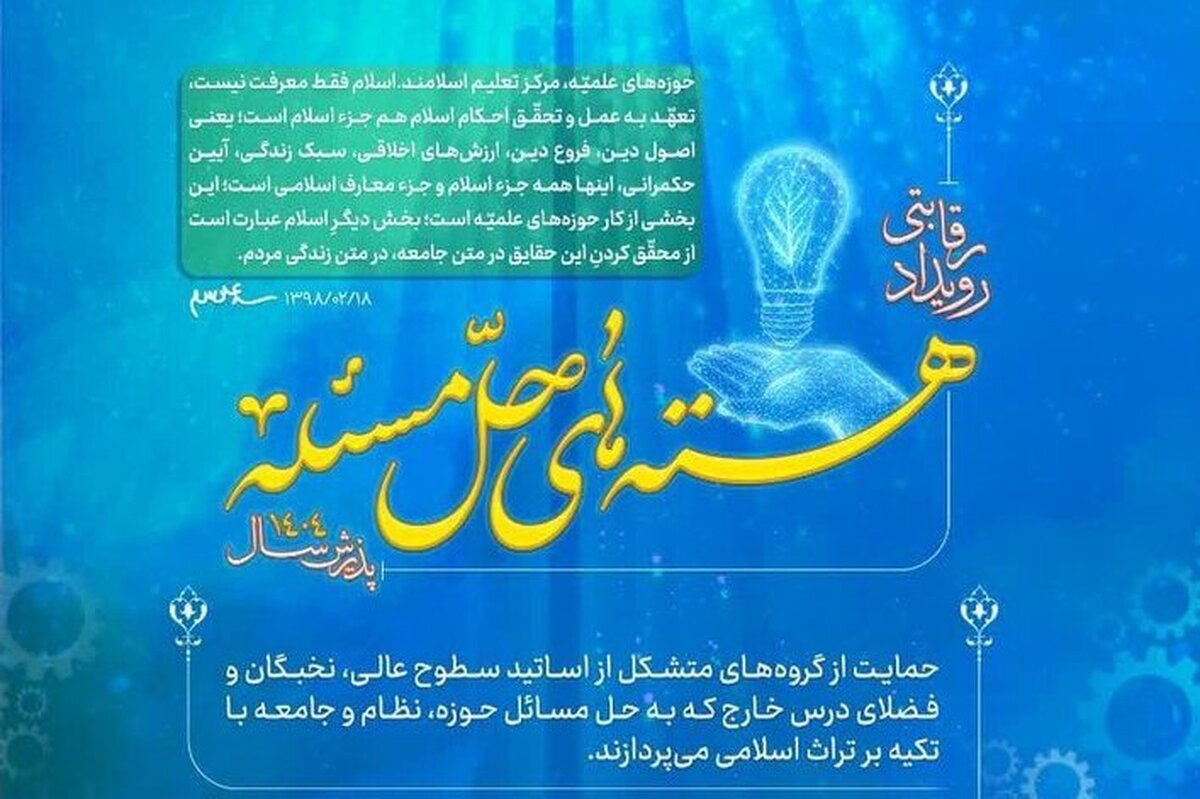 رویداد رقابتی هسته های حل مسئله «پذیرش سال ۱۴۰۴» با هدف حمایت از گروه‌های متشکل از اساتید سطح عالی، نخبگان و فضلای درس خارج در حل مسائل حوزه، نظام و جامعه برگزار می‌شود.