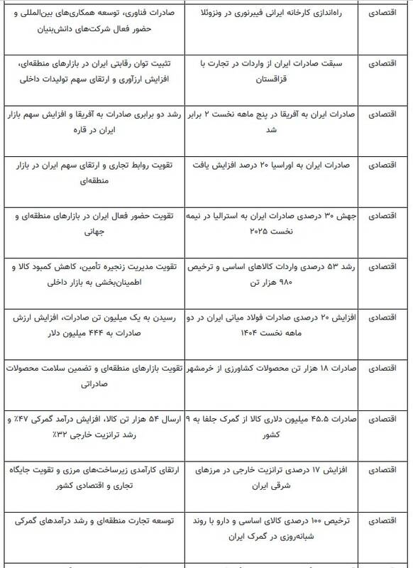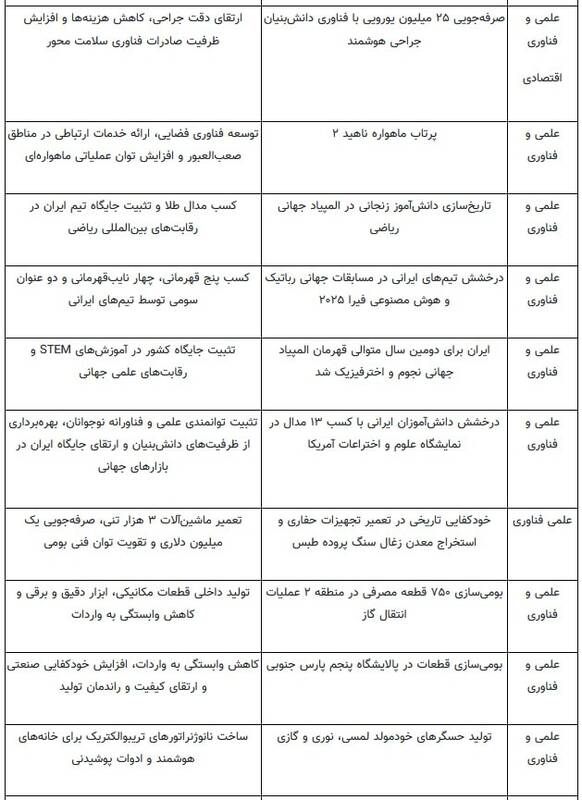 با وجود تلاشهای مداوم برای سیاهنمایی و ایجاد یأس، ایران توانسته دستاوردهای ملی خود را نه تنها حفظ، بلکه گسترش دهد. هر موفقیت، از پیشرفتهای علمی و فناوری گرفته تا توسعه زیرساختها و ارتقای رفاه اجتماعی، نماد عینی اراده، کارآمدی و توان عملیاتی کشور است. این مجموعه نشان میدهد که حتی در شرایط فشار و محدودیت، مسیر توسعه، نوآوری و پیشرفت ایران متوقف نشده و ظرفیتهای فراوانی برای تداوم این حرکت وجود دارد.