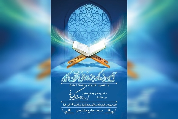 مساجد و حسینیهها، آستان مقدس امامزادگان و بقاع متبرکه شاخص استان، مدارس و دانشگاهها، مصلیها، ادارات و نهادها و حتی منازل و محلات در این ماه صحنه برپایی محافل جزءخوانی قرآن است که با تلاوت روحبخش قاریان و مرتلان ممتاز استانی، فضایی دلنشین و معنوی را به جامعه میبخشد.