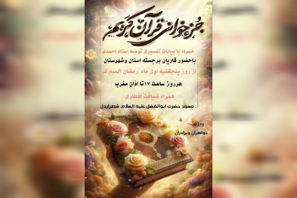 در ادامه، پوستر اطلاعرسانی برخی محافل جزءخوانی روزانه در نقاط مختلف استان چهارمحال و بختیاری از نظر خوانندگان گرامی میگذرد.